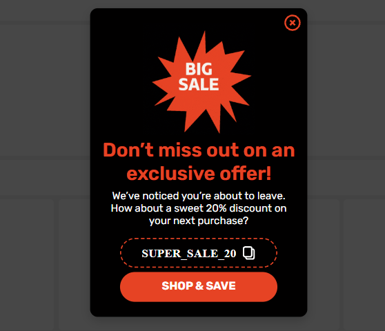 User loads up a cart but hesitates. An exit-intent popup gives them the option to save it. They drop in their email. You follow up with a reminder. Then a timed discount. Often more effective than retargeting ads.