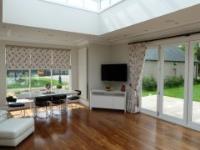 A large family home with a new beautiful sun room with large windows on each side. This room also is set up with full surround sound using discreet in ceiling speakes and a 50” flat screen TV controlled with a single remote control. So the client has a stunning room to enjoy with discreet background music or watching the latest block buster.